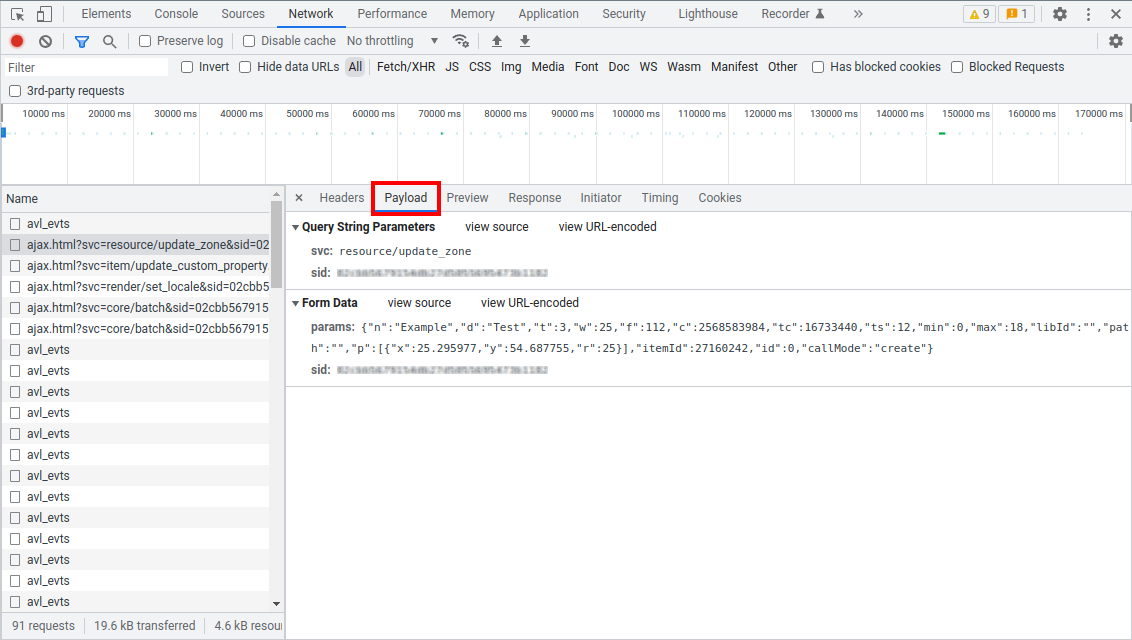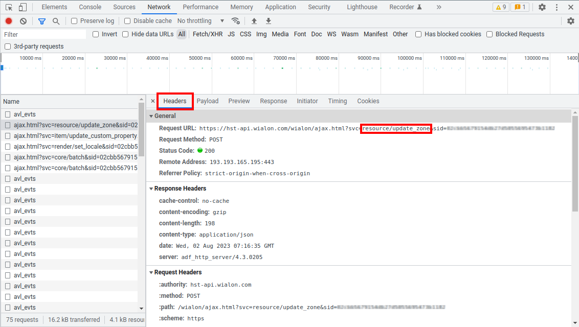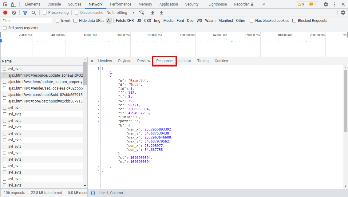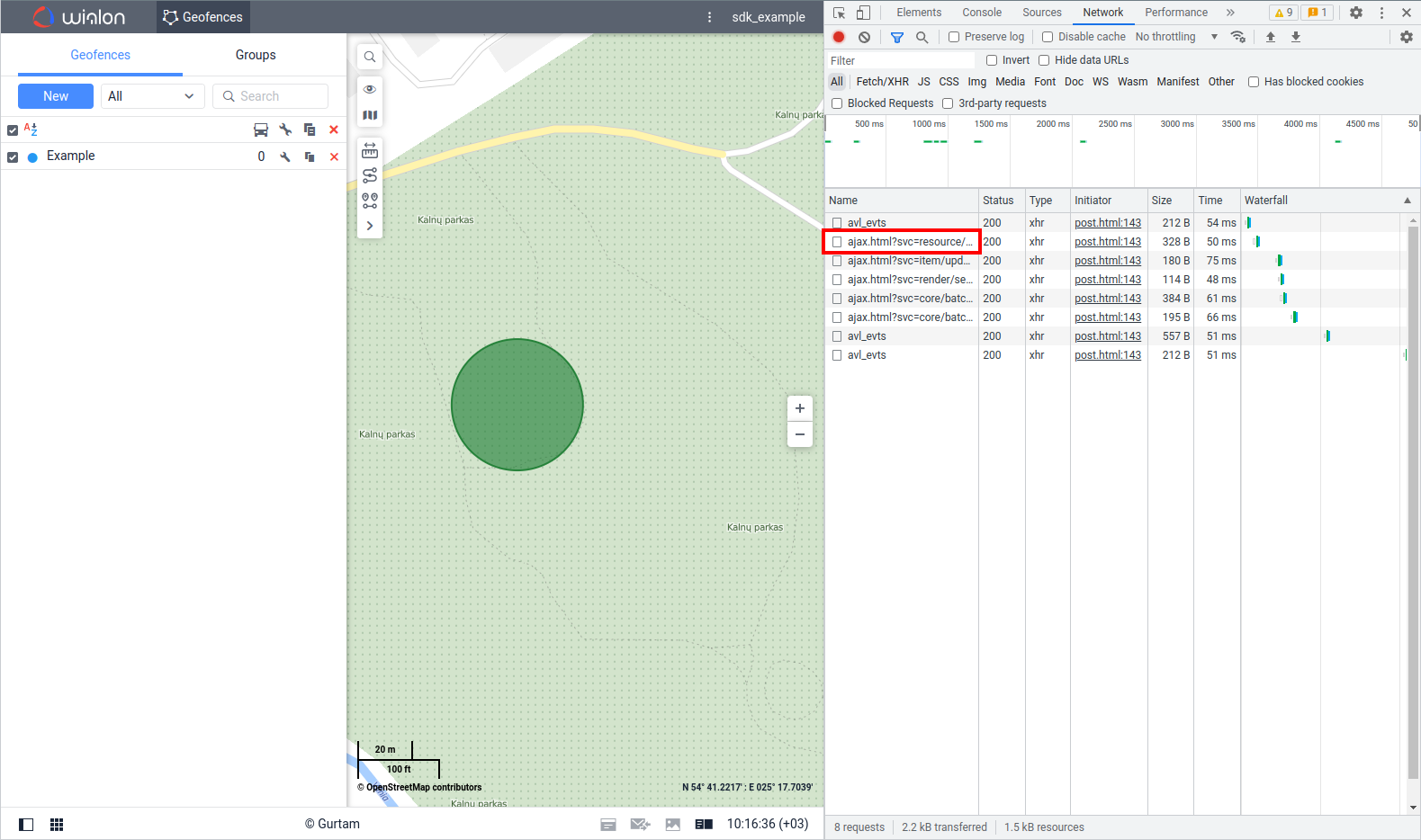 When starting to explore the SDK, it is often necessary to understand which API request is being sent to the server when performing a certain action in the Wialon interface. This can be easily tracked using built-in browser tools for network request monitoring.