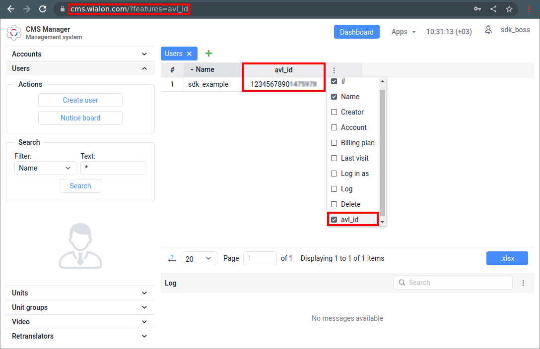 To make the avl_id column shown, you need to log in to the CMS and add ?features=avl_id to the end of the link. An example of such a link is shown in the image below.