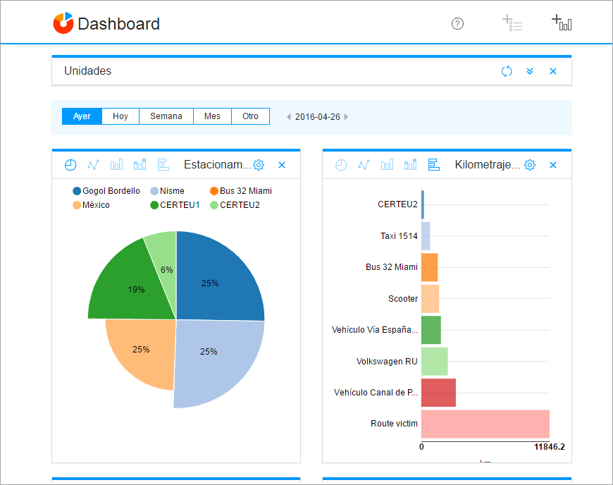 By default, the time interval Yesterday is selected. However, you can select other intervals such as Yesterday, Today, Week, Month, or click Custom and indicate another period manually. As soon as the time interval changes, all graphs are recreated.