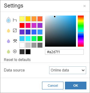 Using the palette or a value in the HEX format, you can specify the colour of indicators for the following types of driver activity: