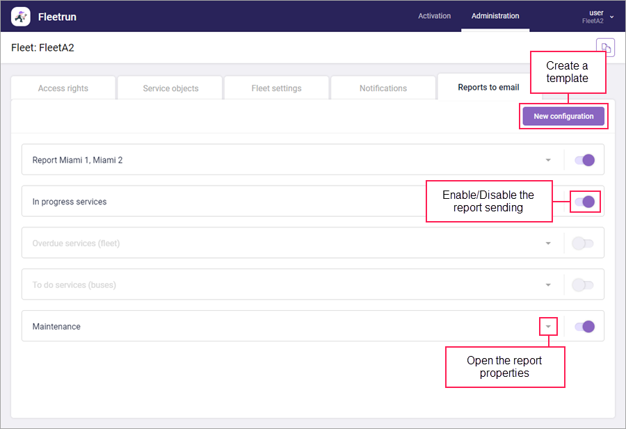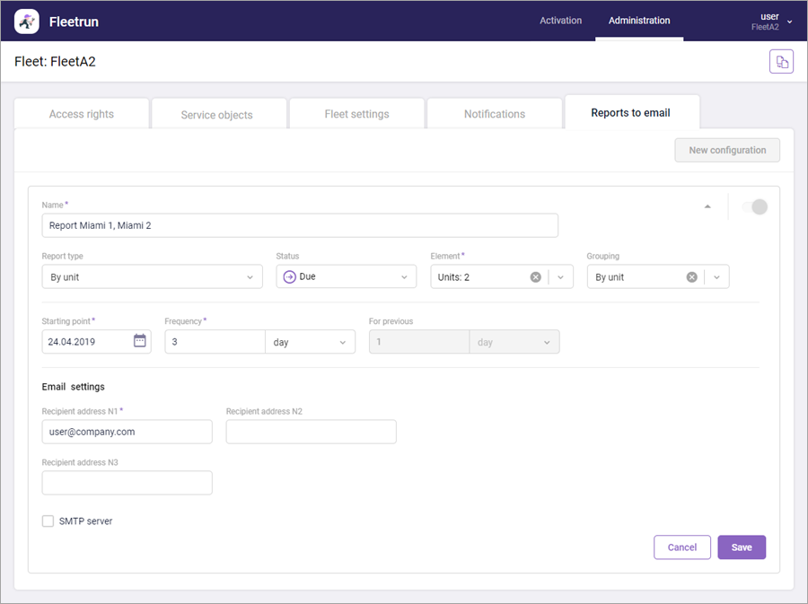 As a result, Fleetrun reports come from the address you have specified. Check that they don’t go to spam.