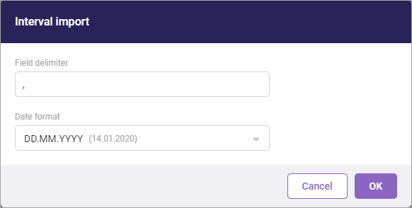 - The name of the interval you want to import should not be the same as that of the existing one. The maximum allowed length is 128 characters.