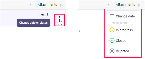 appears. Click on it to open the menu that provides quick access to editing the date and/or status.
