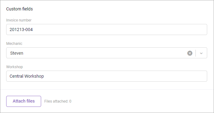 If you select Unit as the service object type, you can also see the custom fields created by the fleet administrator on the same-name tab of the Administration page. These fields are optional.