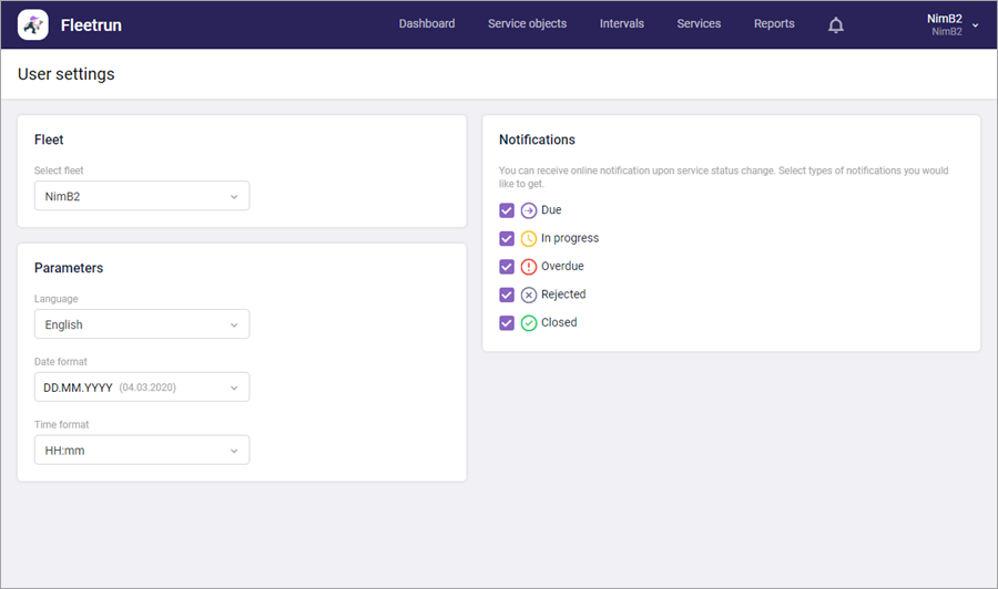 | Fleet | Select the fleet: if several fleets are available, first choose one of them. The fleets to which the user has only administrator rights are not shown in the list. |