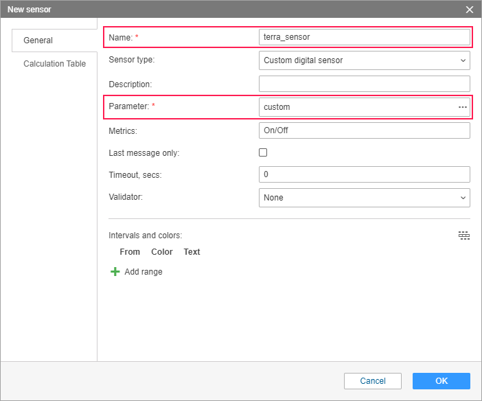 Fill in the required fields: sensor name and parameter. Click ОК.