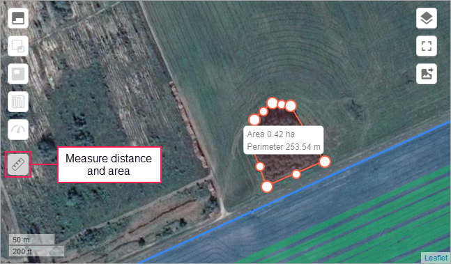 Measuring area and perimeter. Mark the contour of the required area and click on the first point in the end. You can adjust the contour by dragging any of its points.