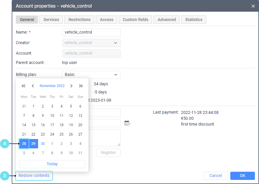 In the calendar, select the date for which you want to restore the resource contents. The dates with the available saved changes are highlighted in orange.