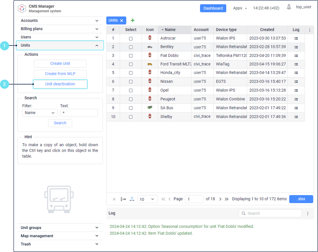 In case of disabling the Unit deactivation service for the account, all the deactivated units are activated automatically in it.