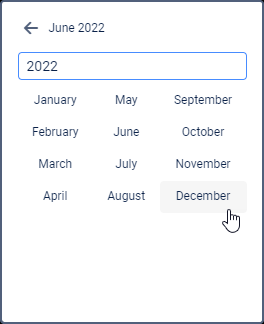 Open the calendar by pointing to the date and time input field and pressing the left mouse button. Use the arrows to select the year and month. To change these values, you can either click on these buttons or use the mouse scroll. Single arrows are used to select the month, double — to select the year. After moving to the required month and year, click on the date below with the left mouse button. This closes the calendar, and the date you selected appears in the text box.
