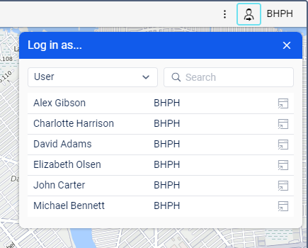 There is an alternative way to log in as another user. To do this, open the Users tab and click on the icon