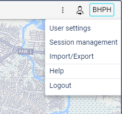 In the right corner of the top panel, the username used to log in is displayed. If you log in as another user, his or her username is indicated in brackets next to yours.