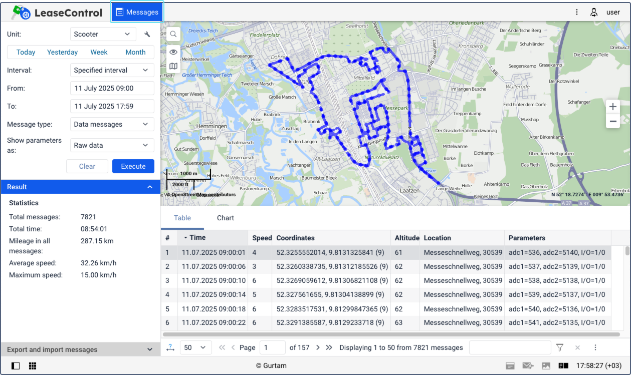 | Parameters (if available) | The values of the parameters of all available sensors. The messages can be filtered by parameters. Sensor parameters can be displayed in separate columns of the table. To do this, you should select the Sensor values option of displaying parameters. |