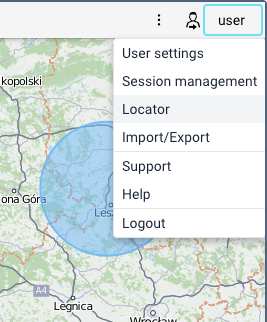 Locator provides a possibility of defining your current location on the map. This is particularly helpful if you use a locator from a mobile device.