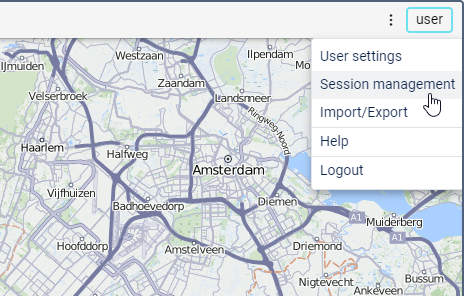 To open the window, click on the username in the upper-right corner and select the Session management item.