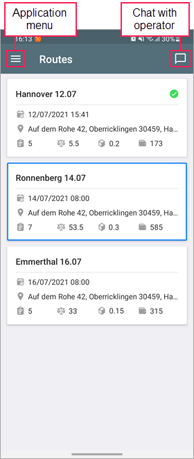 In the Logistics Local mobile application, you can see information about routes and orders, create a route to the delivery point using a third-party application, contact the client, indicate the order status, and attach an image or an electronic signature to it, etc.