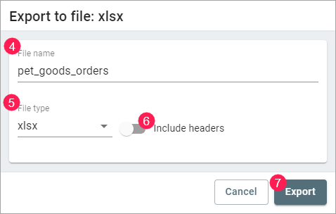 - Select the file type: XLSX or CSV. For the CSV format, you can specify the separator that should be used between the columns.