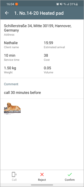 From the map, you can go to the detailed order information. To do this, find the required order in the upper part of the screen and tap it.
