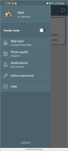 | Tracker mode | Activation and deactivation of the tracker in the mobile application. To use the tracker mode, you should select the WiaTag device type and indicate the unique ID (custom value) in the unit properties in the monitoring system. After that, the tracker switch becomes available in the mobile application settings. |