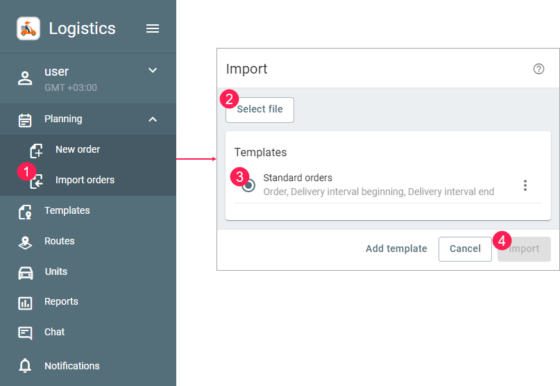 You can not only create orders manually, but also import them from files containing tables with data on the orders. XLSX and CSV (in UTF-8 encoding) files are supported.