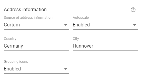 CountryThe selection of the country. The option is available only for Gurtam Maps. If the country is specified, then when you enter an address (for example, while creating an order), the system suggests the options within this country in the first place. If nothing is found, the addresses related to other countries are shown.