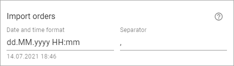 SeparatorThe character which is used as a column separator in CSV files. If the value specified in this field does not match the separator in the file, an import error will occur.