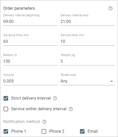 Strict delivery intervalThe option which allows planning the route adhering to the indicated delivery intervals.