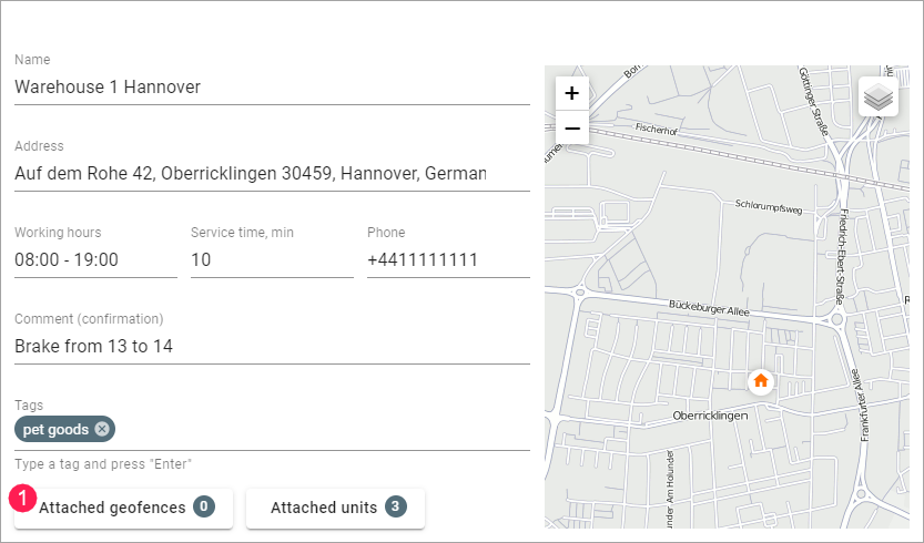 You can attach a geofence added on the same-name tab to the warehouse. At the first stage of planning, this allows you to sort orders by this geofence.