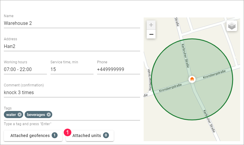 | Attached geofences | The number of geofences attached to the warehouse. | |