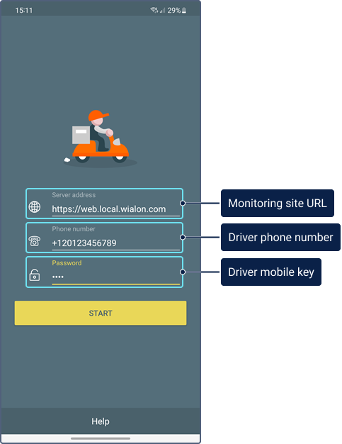 In the driver properties, fill in the Phone number and Mobile key fields.