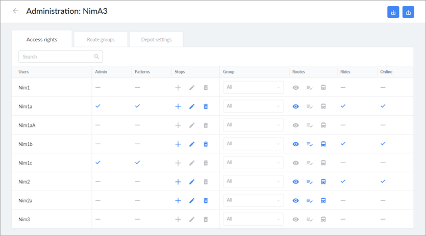 - Admin. This access right allows you to distribute access rights, manage route groups, change depot settings.
