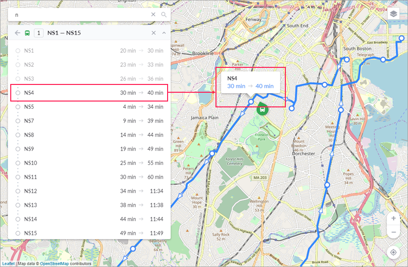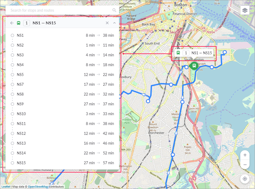 - When viewing the stop on the map, only the vehicles that participate in the routes that run through it are shown.