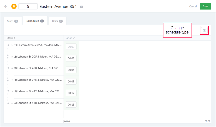 . If you have deleted the schedules accidentally, click Cancel next to the route name. If you have deleted the schedules correctly, save the route.