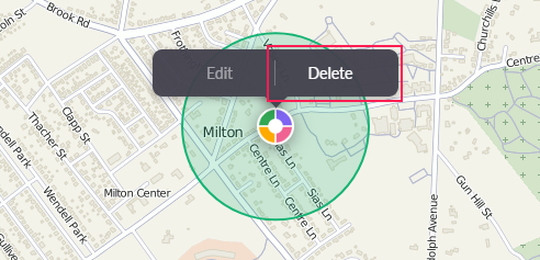 . - Сlick on the stop icon on the map and select the Delete option from the pop-up menu.