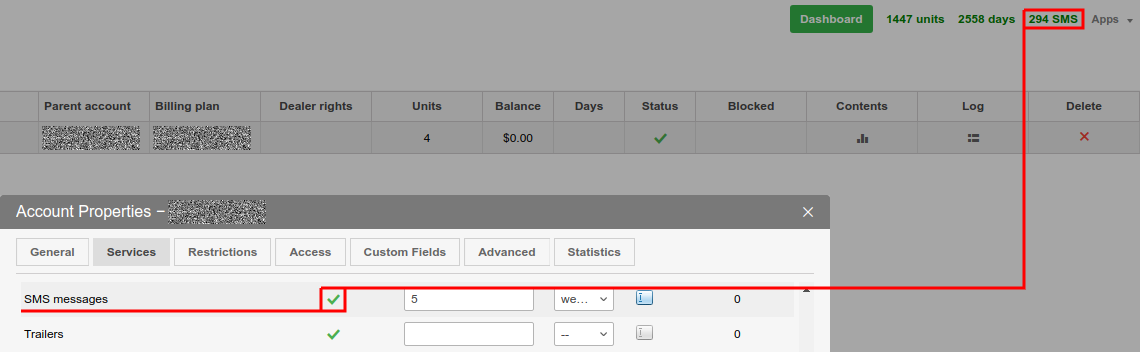 This counter is not displayed if the service uses a personal modem for sending SMS.