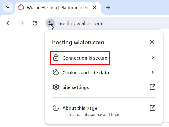 In the pop-up window, click on the Connection is secure.
