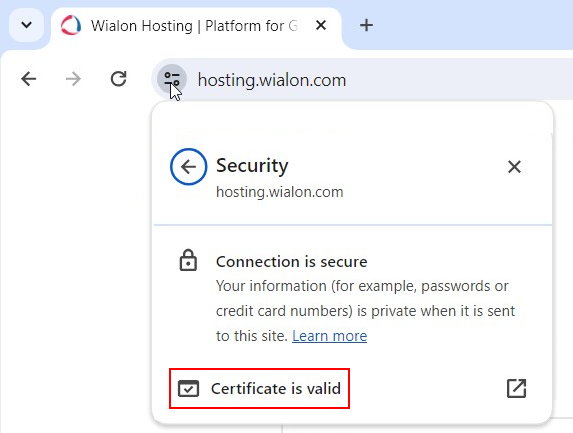 You may need an SSL certificate if you log into Wialon using a site with an address other than online.nova-ex.su/eu/us/org (i.e., you use an extra-site). SSL certificate allows the use of HTTPS connection to secure the personal user’s data. If an SSL certificate is not used, an HTTP connection is used, and your site is marked as not secure in the browser.