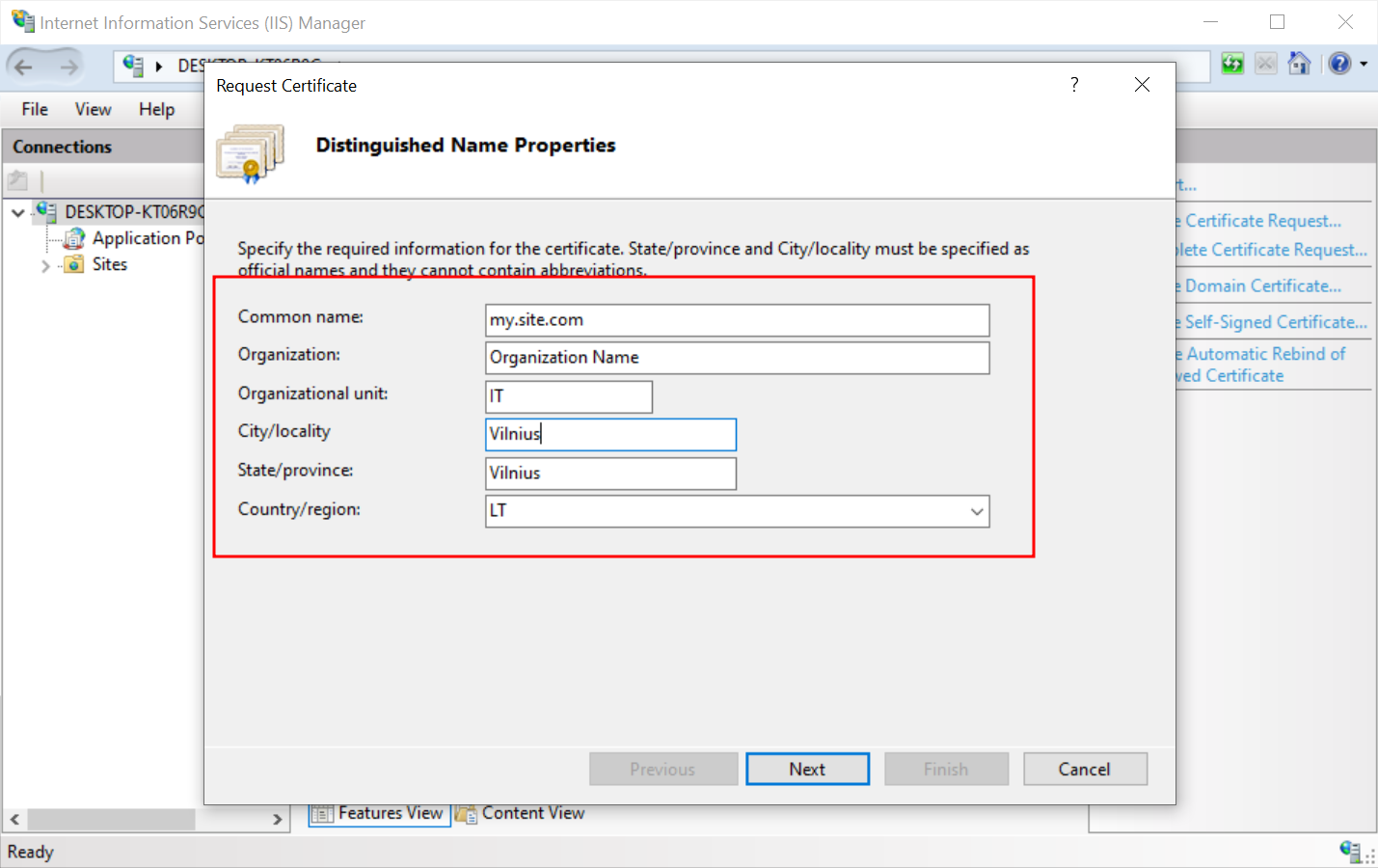 Enter the following information that will be incorporated into your certificate request: