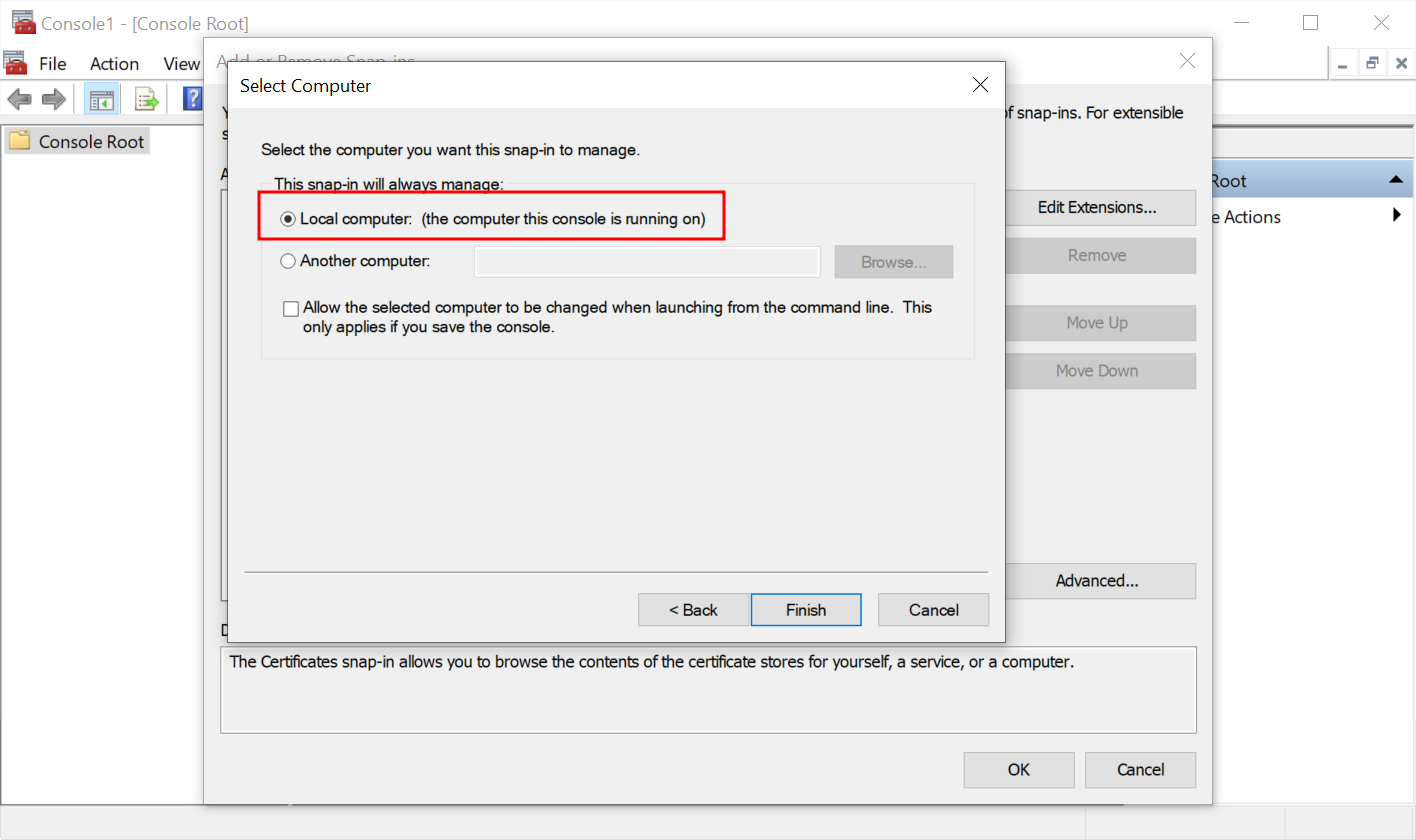 This snap-in will always manage Local computer (the computer this console is running on) and press Finish.