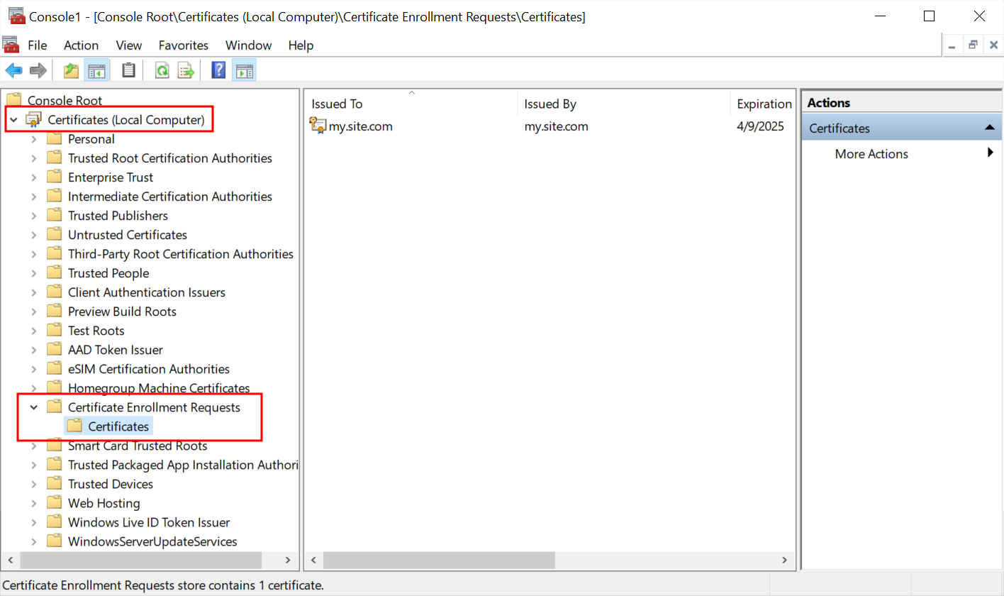 In the left column, select Certificate Enrollment Requests and click Certificates below it.