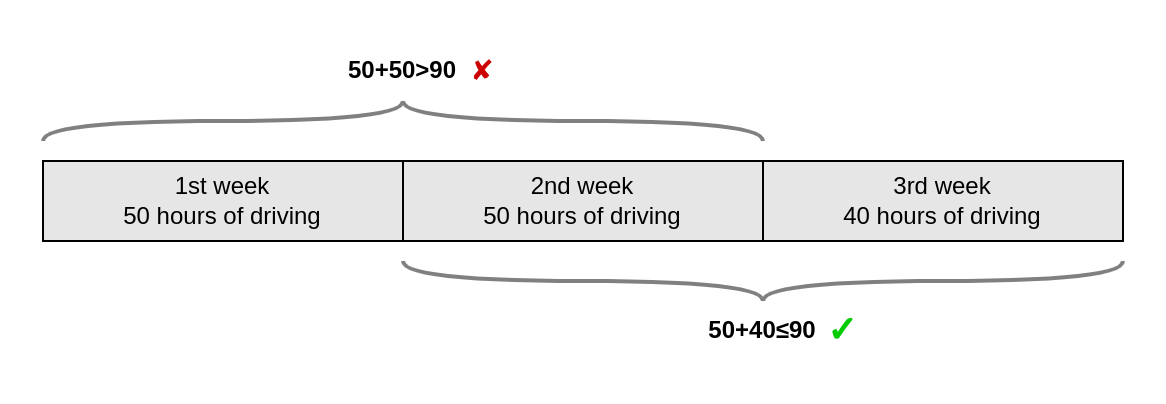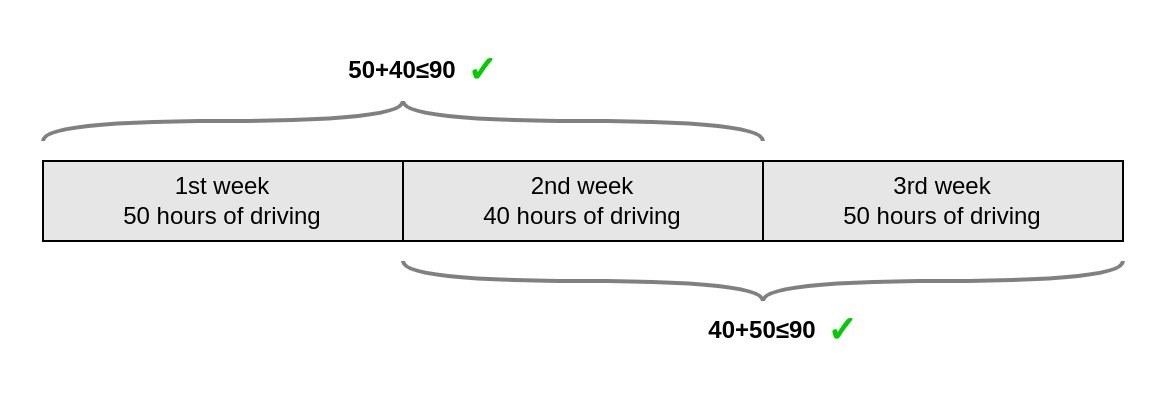 The maximum driving time within one working week is 56 hours, and within two consecutive weeks — 90 hours.