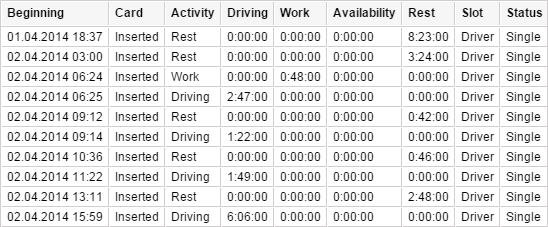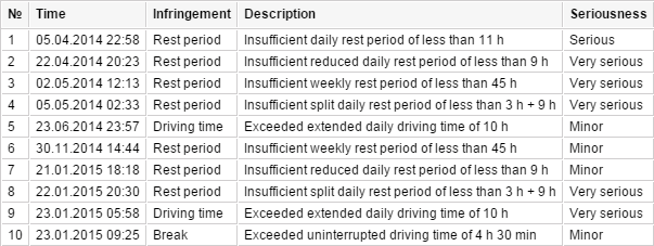 The tachograph information displayed in Wialon has no legal force, despite the fact that it may be based on data received from the tachograph.