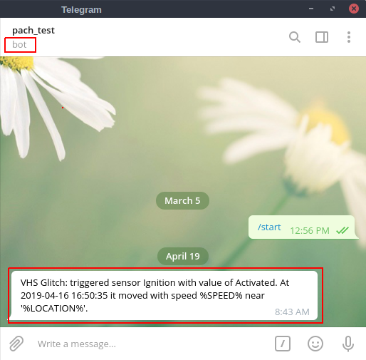 When such a notification is triggered, the message will be sent to the chatbot and only you will see it: