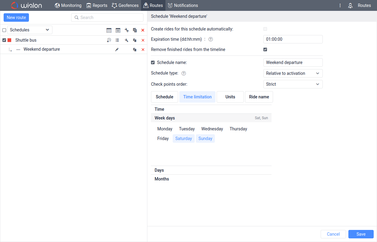 The second layer of routes consists of schedules, which represent the expected arrival time at check points and, optionally, the departure time from them. Multiple schedules can be added for a set of check points.