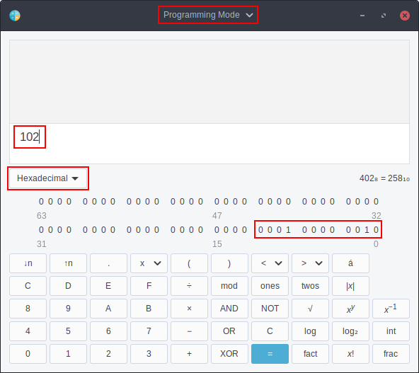 - Switch the calculator to a hexadecimal numeral system (HEX).