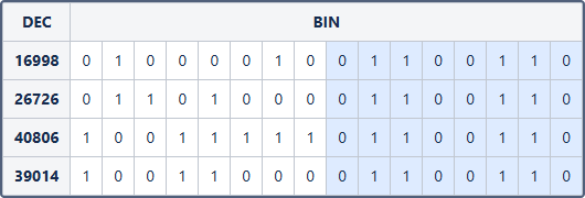 If the bit in the second number is equal to 0 (highlighted in red), then the final value of this bit will also be 0. If the bit in the second number is equal to 1 (highlighted in green), then the final value of this bit will be equal to the value of the bit in the first number. We can say that using the binary representation of the number 15, the number 122 was filtered in such a way as to leave only the 4 least significant bits in it.