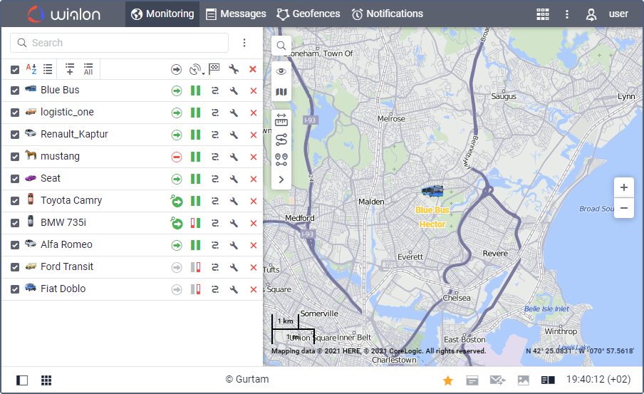 - generating reports (tables, charts, tracks on the map) based on the information received from the units, and more.