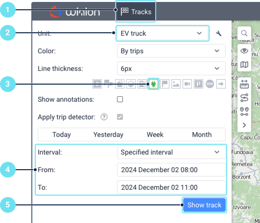 ). - Select the time interval for which you want to generate the track. For additional track settings, see Track parameters.