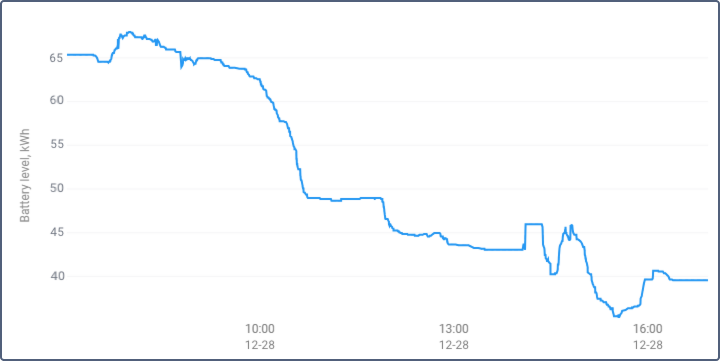 - Final battery level. Battery level in kWh at the end of the interval for which the report is generated.