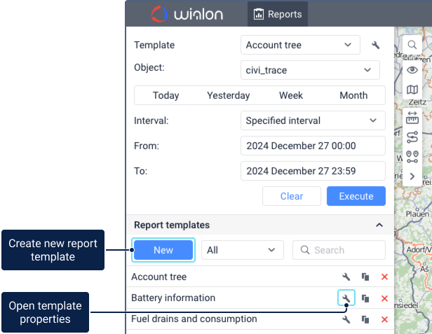 - On the Reports tab, select the template to which the table has been added, then select the required unit and time period, and click Execute.